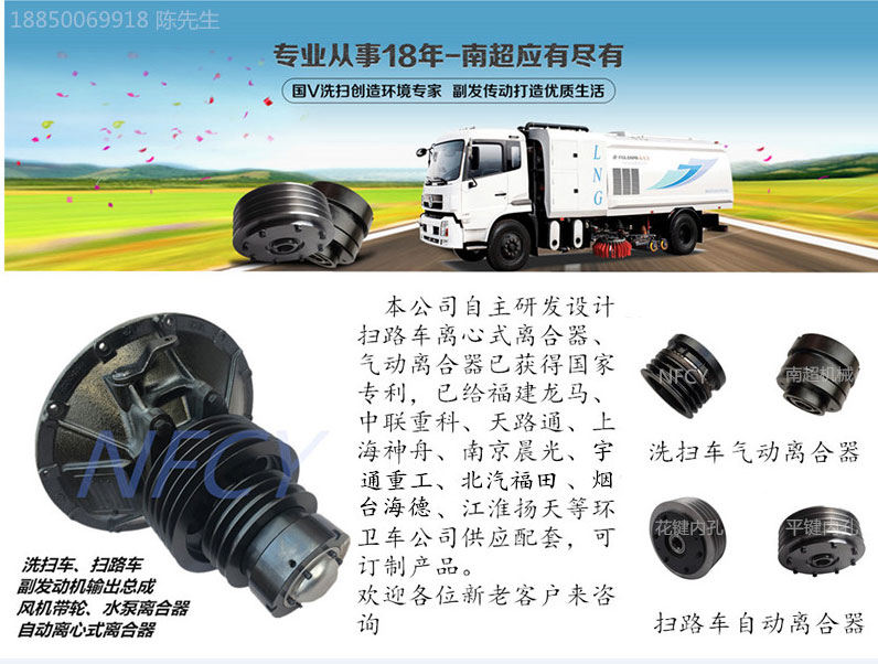 本公司自主研發設計掃路車離心離合器、氣動離合器已獲得國家專利。